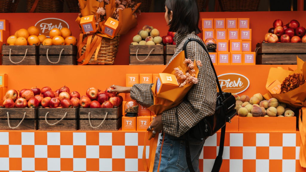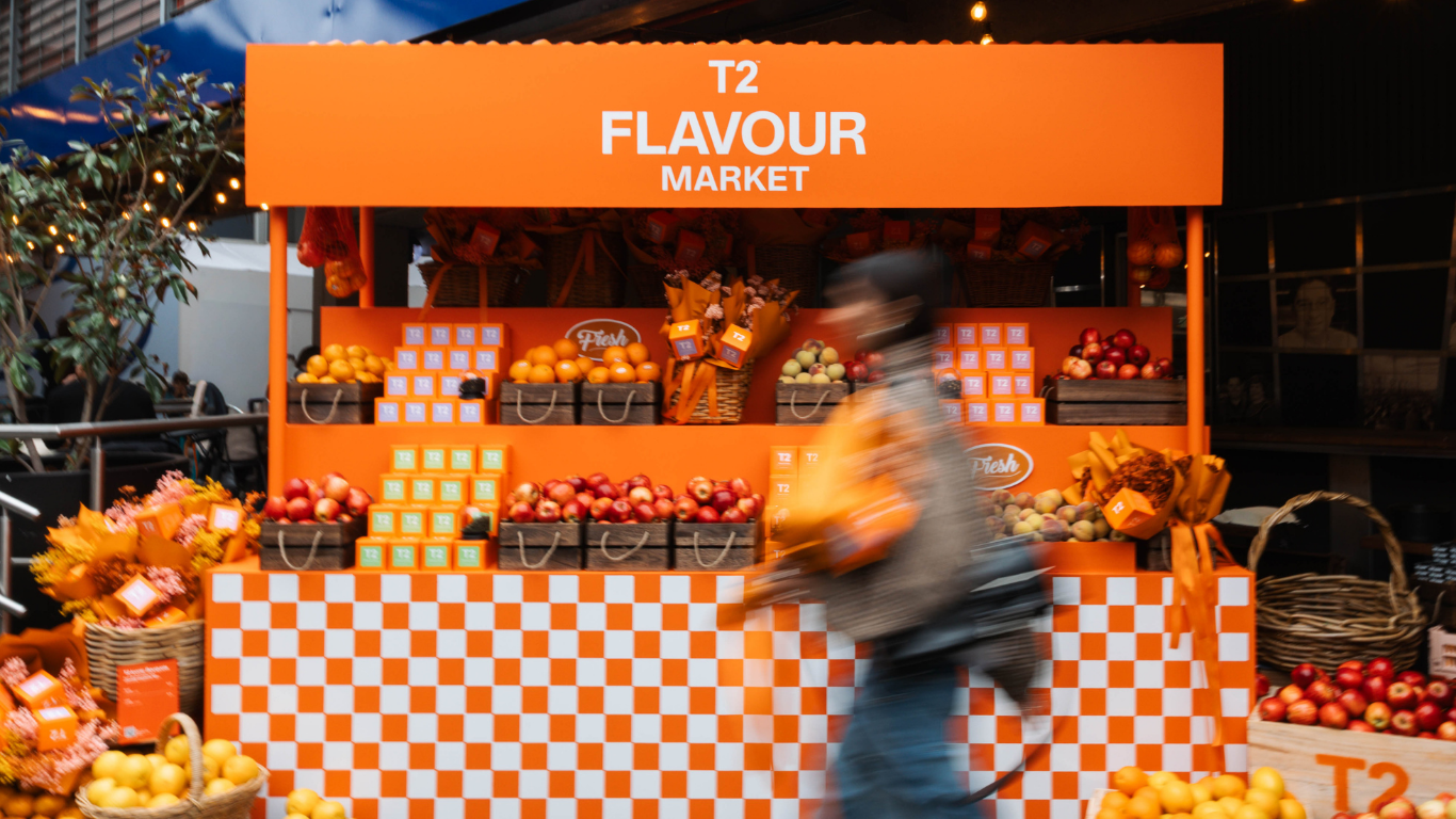 We brought that vision to life through a custom-built activation that drew from the visual language of a traditional market. Fresh produce, bold colour, and T2 product were layered throughout the space, creating an environment that invited people to slow down, explore, and engage with the brand in a more considered way.